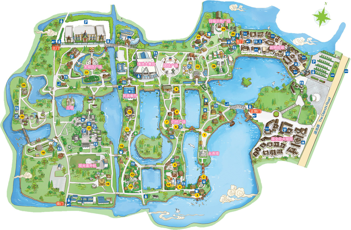 哈尼族是我國西南邊疆歷史悠久的農(nóng)耕民族,人口約130余萬,主要居住在云南省紅河、元江、瀾滄江流域的無量山區(qū)和哀牢山區(qū)。哈尼寨占地15畝,展現(xiàn)了最具有代表性的蘑菇房和愛尼母子房,日月廣場;有表現(xiàn)哈尼族關(guān)于魚生萬物傳說的大型浮雕,有表現(xiàn)哈尼族遷徙傳說的圖騰柱;有體現(xiàn)生產(chǎn)生活的磨房、龍巴門、秋千場、梯田;寨神樹和祭石表現(xiàn)了哈尼族“萬物有靈、多神崇拜”的宗教信仰。哈尼傳統(tǒng)的節(jié)日有“年首扎勒特”、“苦扎扎”...
