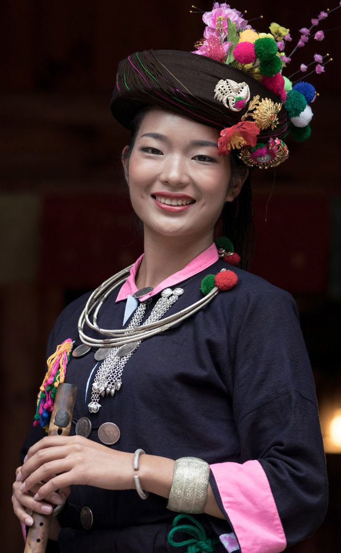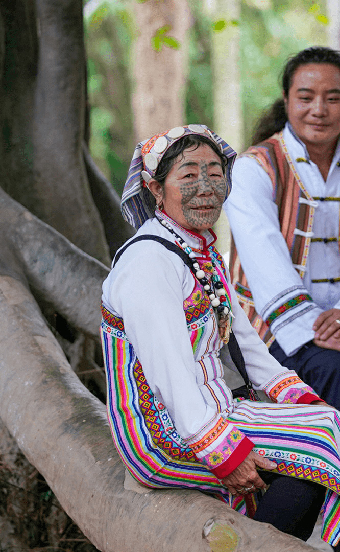 德昂族人口約1.7萬,主要分布在德宏州和保山市的潞西、梁河、瑞麗、隴川、隆陽等縣區(qū)。民居多為草排覆頂竹木結(jié)構(gòu)的干欄式建筑,眼前的德昂村建筑納入了能容納數(shù)十人居住的德昂大房子,氈帽頂?shù)男》孔?,還有頗具浪漫色彩的大公房、小公房……還建有“龍陽塔”標(biāo)志及佛教奘房、佛塔。德昂族民間普遍信奉南傳佛教,民俗活動與佛事活動關(guān)聯(lián)緊密。潑水節(jié)、開門節(jié)、關(guān)門節(jié)是重大節(jié)日。德昂族服飾色彩豐富,口頭文學(xué)特別是民歌創(chuàng)作活動...