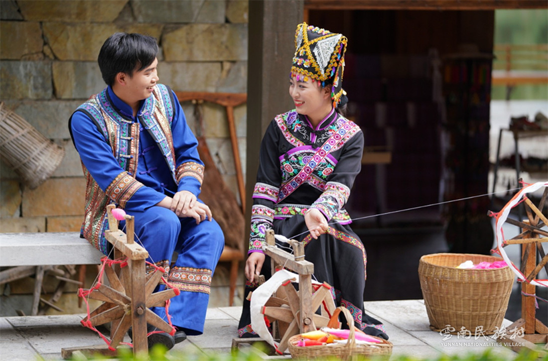 云南壯族主要聚居在文山州,人口114萬,民間的村寨大多依山傍水。壯族擅長種植水稻,有太陽崇拜和長老崇拜的風(fēng)俗,視銅鼓為重器,厚愛銀飾,善烹制五色花米飯,能歌善舞,熱情好客。進入景區(qū)壯族村,迎面有祭祀龍王的龍柱,兩邊是先民繪制的天王崖畫和為紀念傳說洪水泛濫時幫助先民度過劫難而建的石葫蘆亭。祭祀玉皇大帝的昊天閣和傳說能驅(qū)邪納福的碩大銅鼓聳立在廣場兩側(cè)。桿欄式和麻欄式民居、壯族青年社交休憩的“情廊”、村...