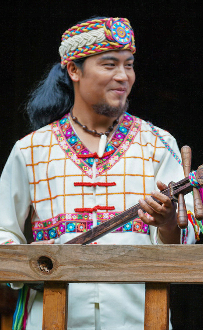 佤族人口約36萬,主要聚居在云南省瀾滄江南段以西的阿佤山區(qū)。佤族寨位于“翠漪洲”東南角。寨內(nèi)分布有茅草頂?shù)母蓹谑浇ㄖ?、牛頭廣場、神靈廣場、司崗里石雕以及糧倉等。牛頭廣場是佤族古老的剽牛活動場所,場正中的牛角為佤族的寨樁,廣場前的兩個石人分別為佤族的男性和女性祖先。神靈廣場表現(xiàn)了佤族萬物有靈、靈魂不死的自然崇拜觀念。場中兩個石人雕像分別為佤族最崇拜的“木依吉”和“阿依娥”。佤族木鼓舞節(jié)拍鮮明強烈,...
